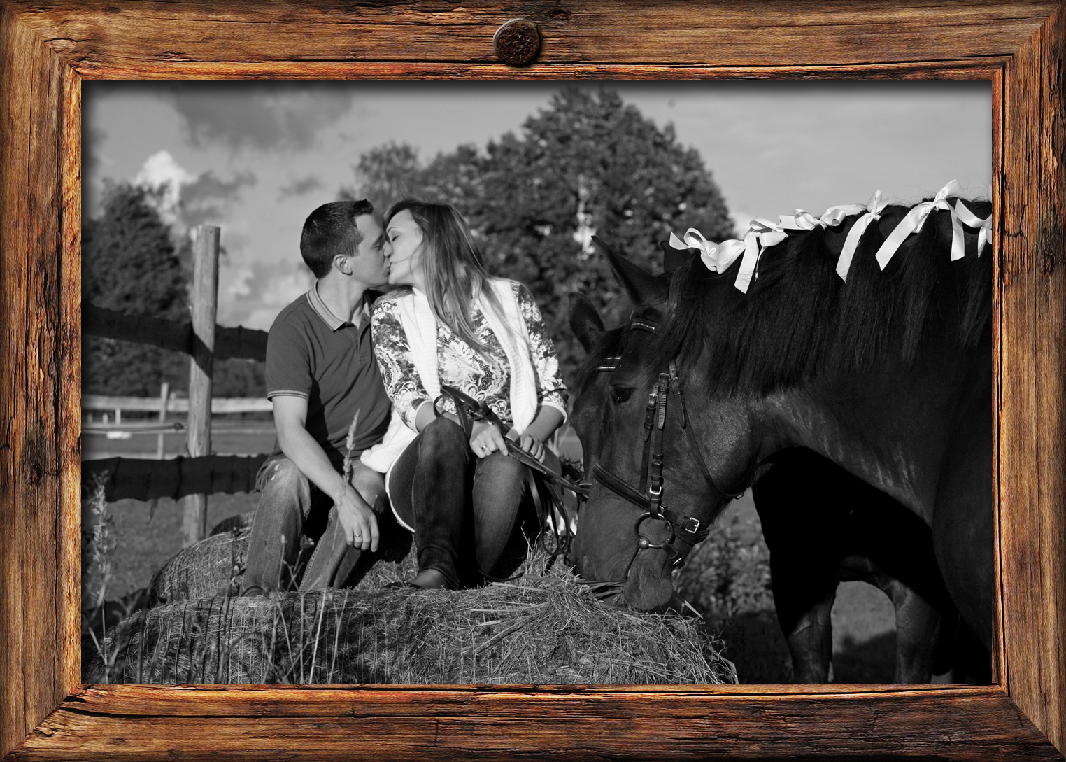 Романтический вечер на свежем воздухе с шампанским и фруктами. Фотосессия верхом на нарядных лошадках и собственными руками выкованная монетка на счастье.